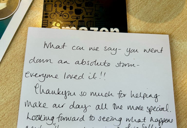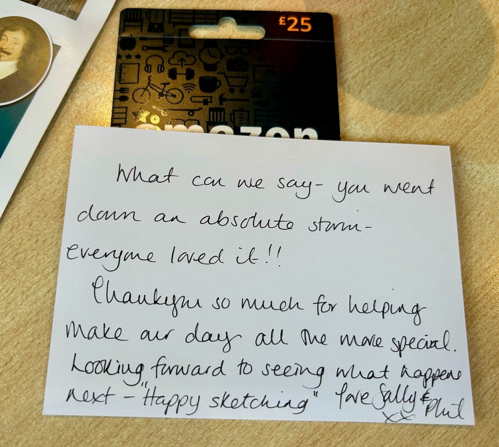 Live sketching adds a unique talking point and leaves attendees with a personalised gift – ideal for client engagement, staff appreciation, or special celebrations. Based in Yorkshire, available for bookings across the UK.