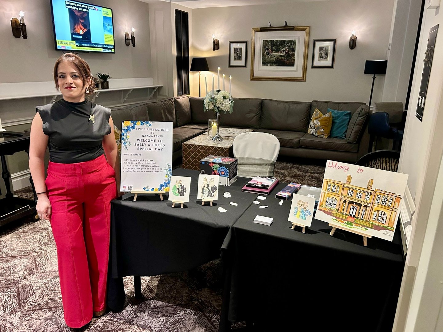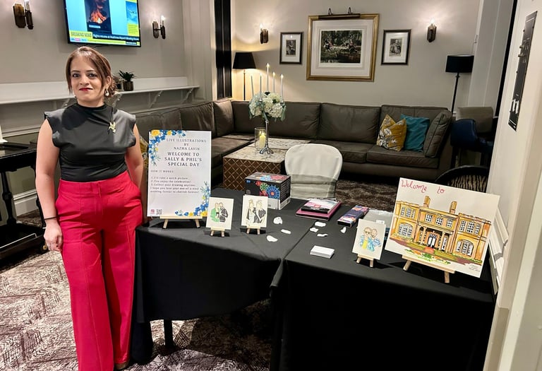 At Lavin Art, we turn life’s most meaningful moments into timeless illustrations. Founded by Yorkshire-based artist Naz Lavin, we specialise in live event illustration for weddings, private parties, and corporate events across the UK.