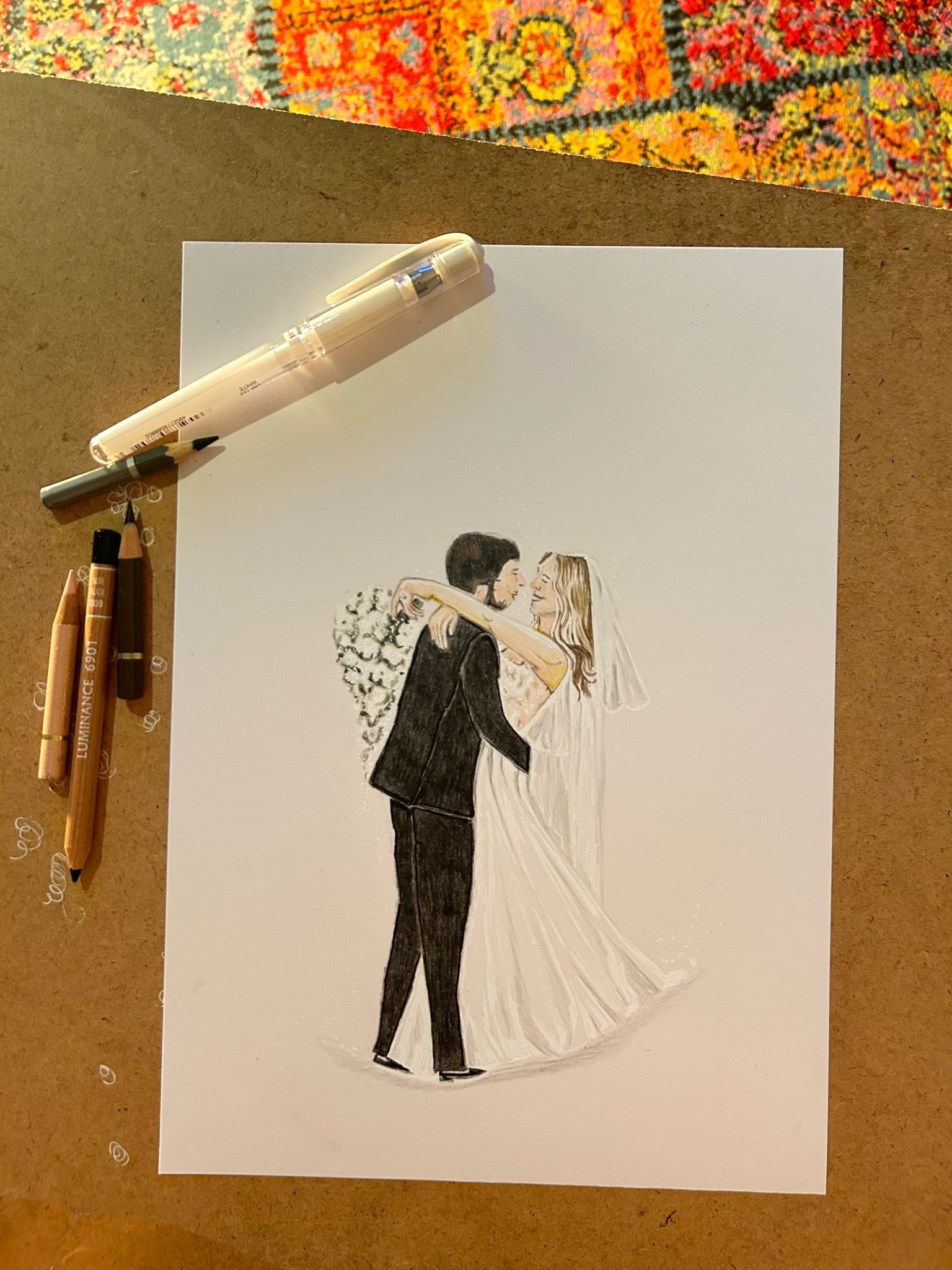 Each illustration is lovingly handcrafted to reflect your special day with personal detail, artistic charm, and lasting meaning.