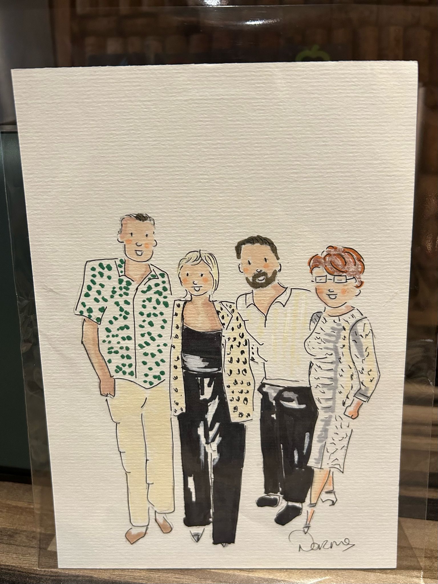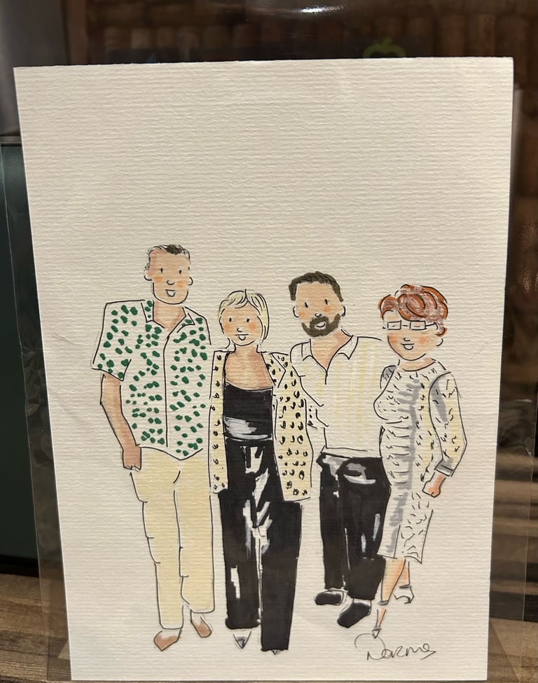Whether she’s drawing your guests live or designing custom stationery from reference photos, Naz brings creativity and connection to every stroke.