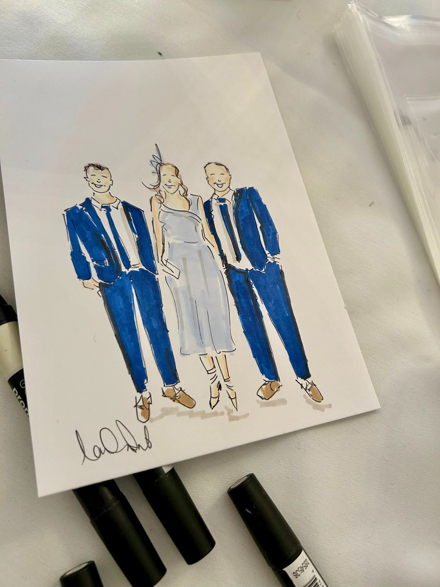 Explore Lavin Art’s portfolio of live event illustrations, capturing unforgettable moments at weddings, private parties, and corporate events across the UK. Each piece is hand-drawn by artist Naz Lavin, offering a unique, personal touch your guests will remember forever.